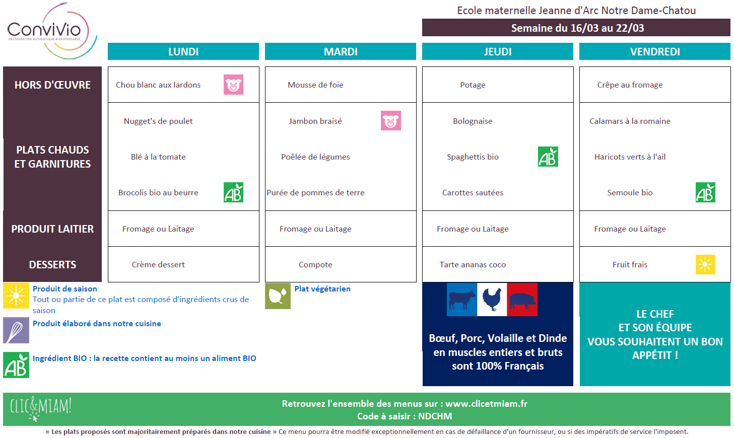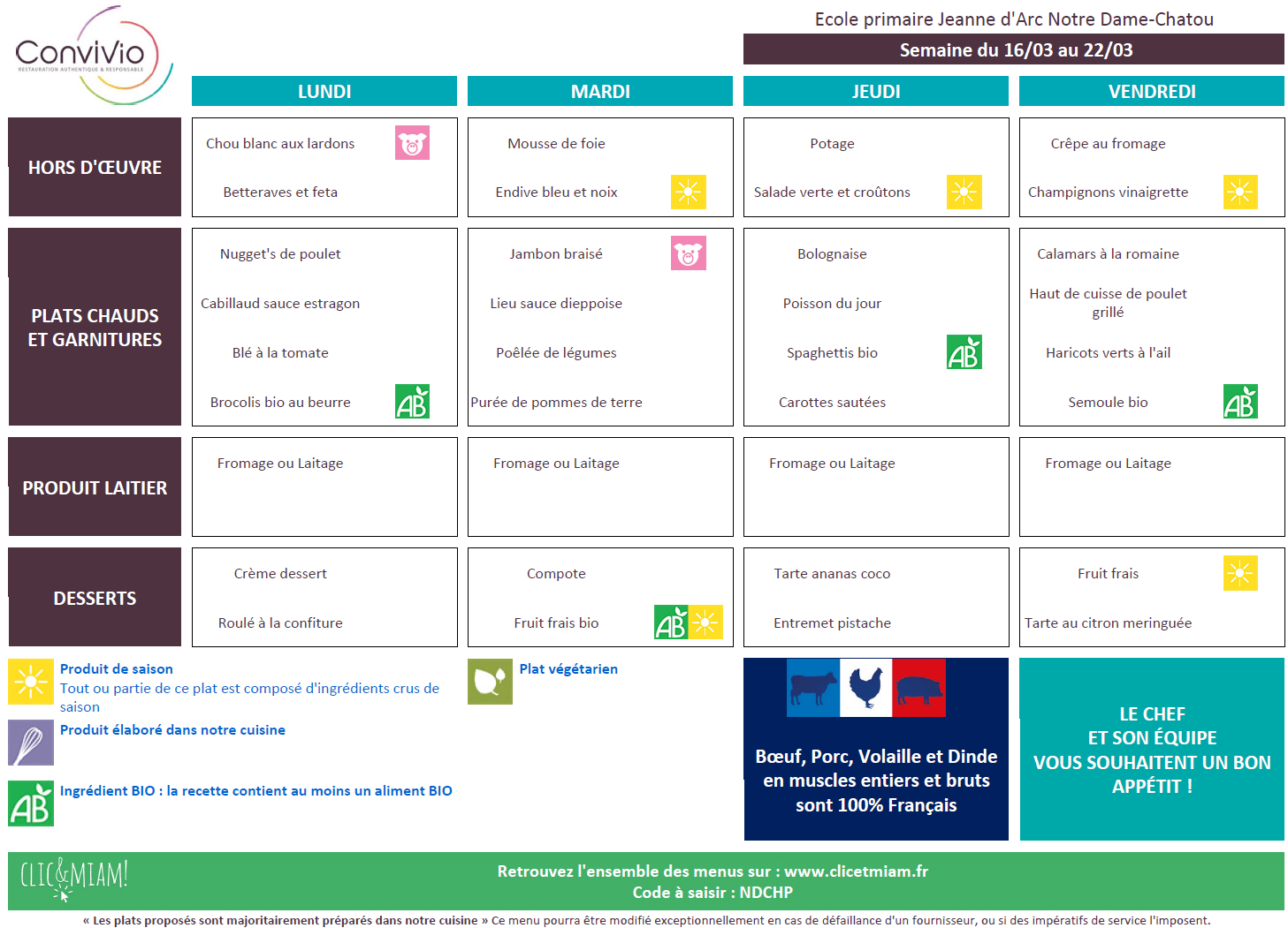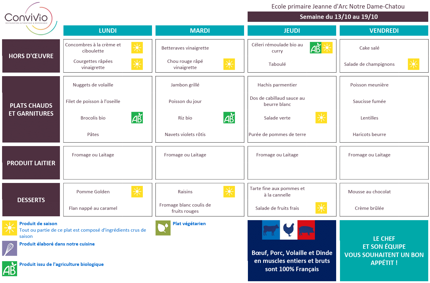 Chaque semaine, vous trouverez ci-dessous les menus proposés aux élèves. Ils sont affichés à l’école et régulièrement mis à jour sur cette page.